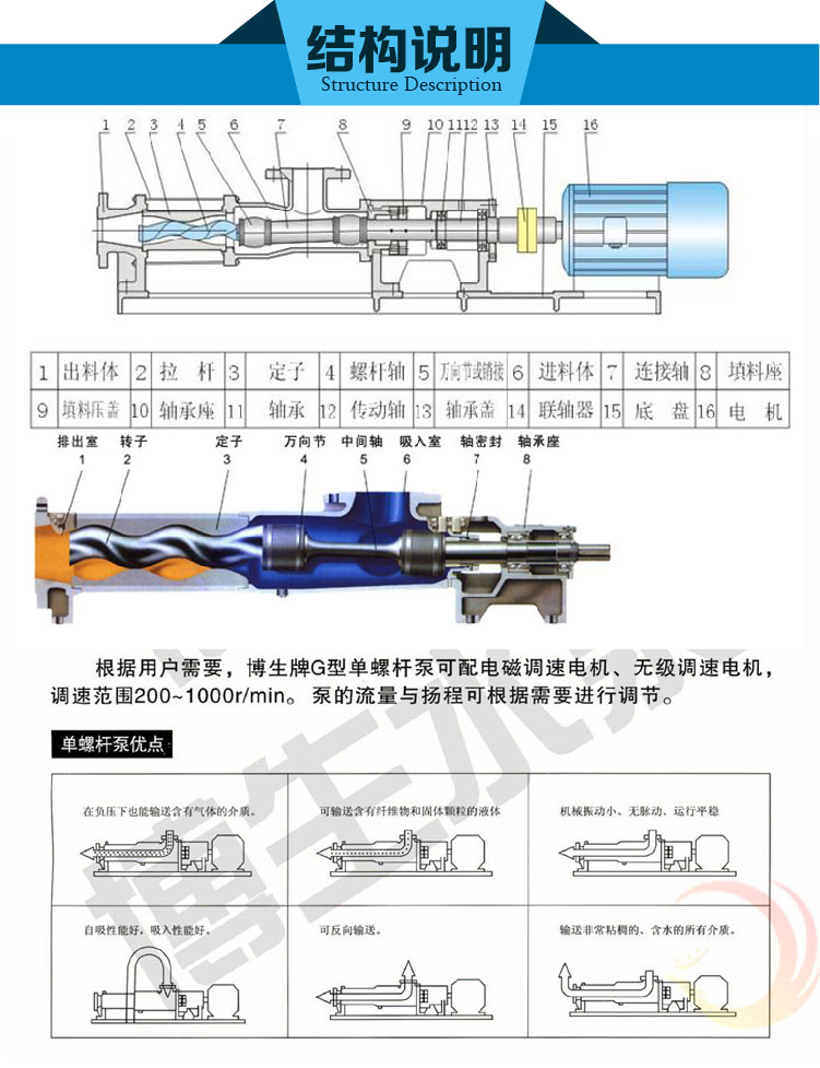 G型軸不銹鋼鑄鐵單螺桿泵